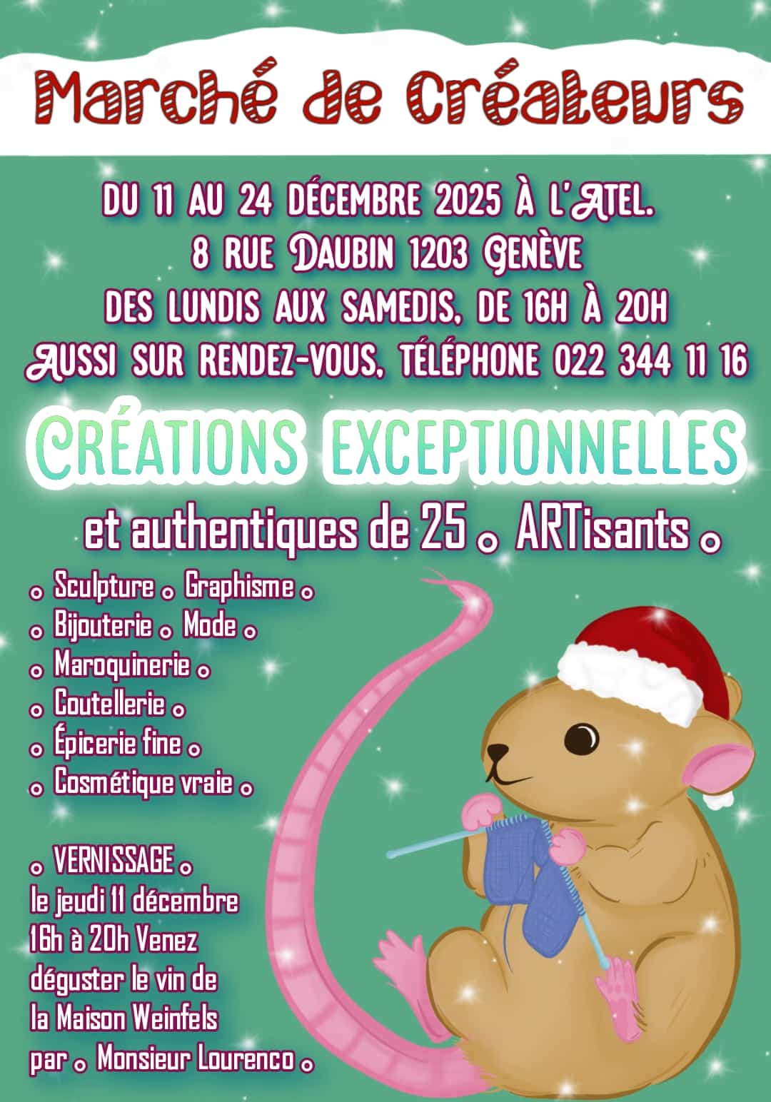 Du 11 au 24 décembre, lun – sam de 16h00 à 20h00, 8 rue Daubin, GE
