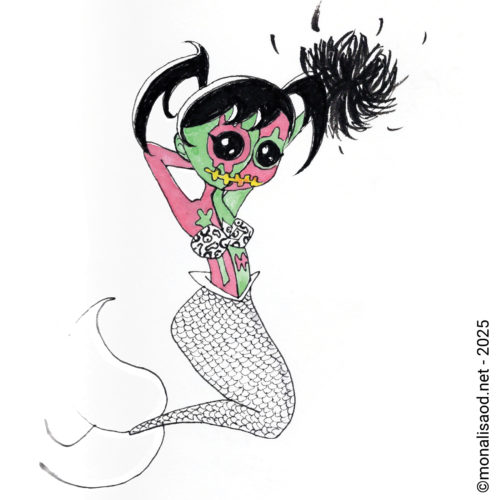 Une série qui date déjà de l’année passée mais que je n’avais pas publiée ici. Vous commencez à me connaître, j’aime bien les challenges sur Insta pour sortir un peu de mes dessins habituels. Cette fois, il s’agit de dessiner des sirènes pendant tout le mois de mai, certains se pliant à une liste définie ou propre à chacun. J’ai décidé de développer la mienne autour de ma (vaste) discothèque en utilisant des groupes au style iconique.